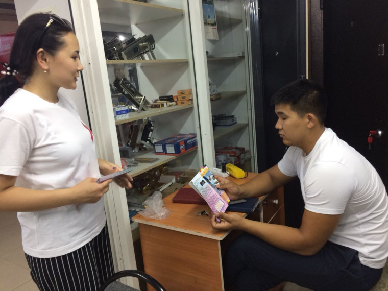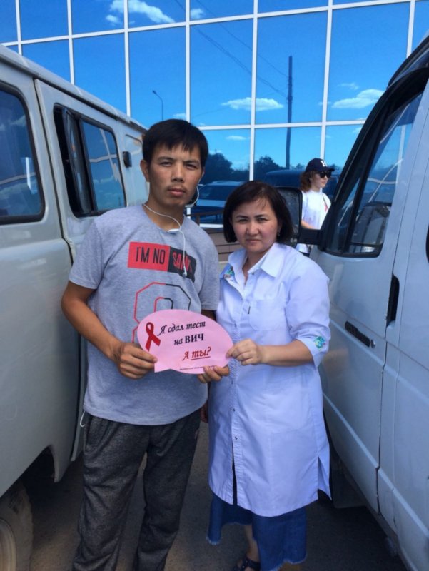 10 июля 2018 года в рамках акции «Пройди тест на ВИЧ» врачи-эпидемиологи Л.Баиманова и С. Жулмагамбетова рассказывали жителям о путях передачи и мерах защиты от ВИЧ-инфекции, а также о стигме и дискриминации.
