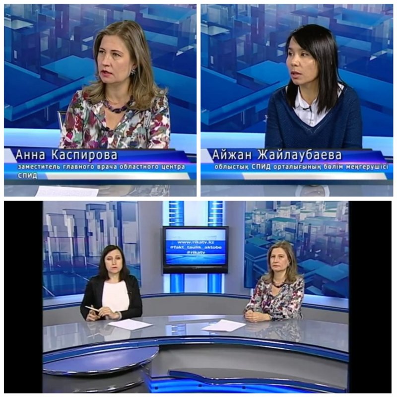 9 - 10 января 2019 года специалисты ОЦ СПИД заместитель главного врача по профилактической работе Каспирова Анна Александровна и заведующий профилактическим отделом Жайлаубаева А.А. приняли участие в передаче «Из первых рук», на местном телеканале «РИКА ТВ» темой, которого является «Профилактика ВИЧ и СПИД». Передача проходила на русском и казахском языках.