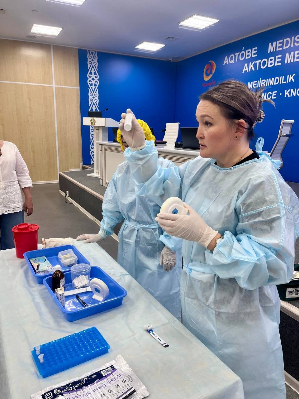 Для повышения качества экспресс-тестирования на ВИЧ в организациях родовспоможения сотрудники Актюбинского областного Центра по профилактике и борьбе со СПИД провели практический семинар для медработников Актюбинского медицинского центра.