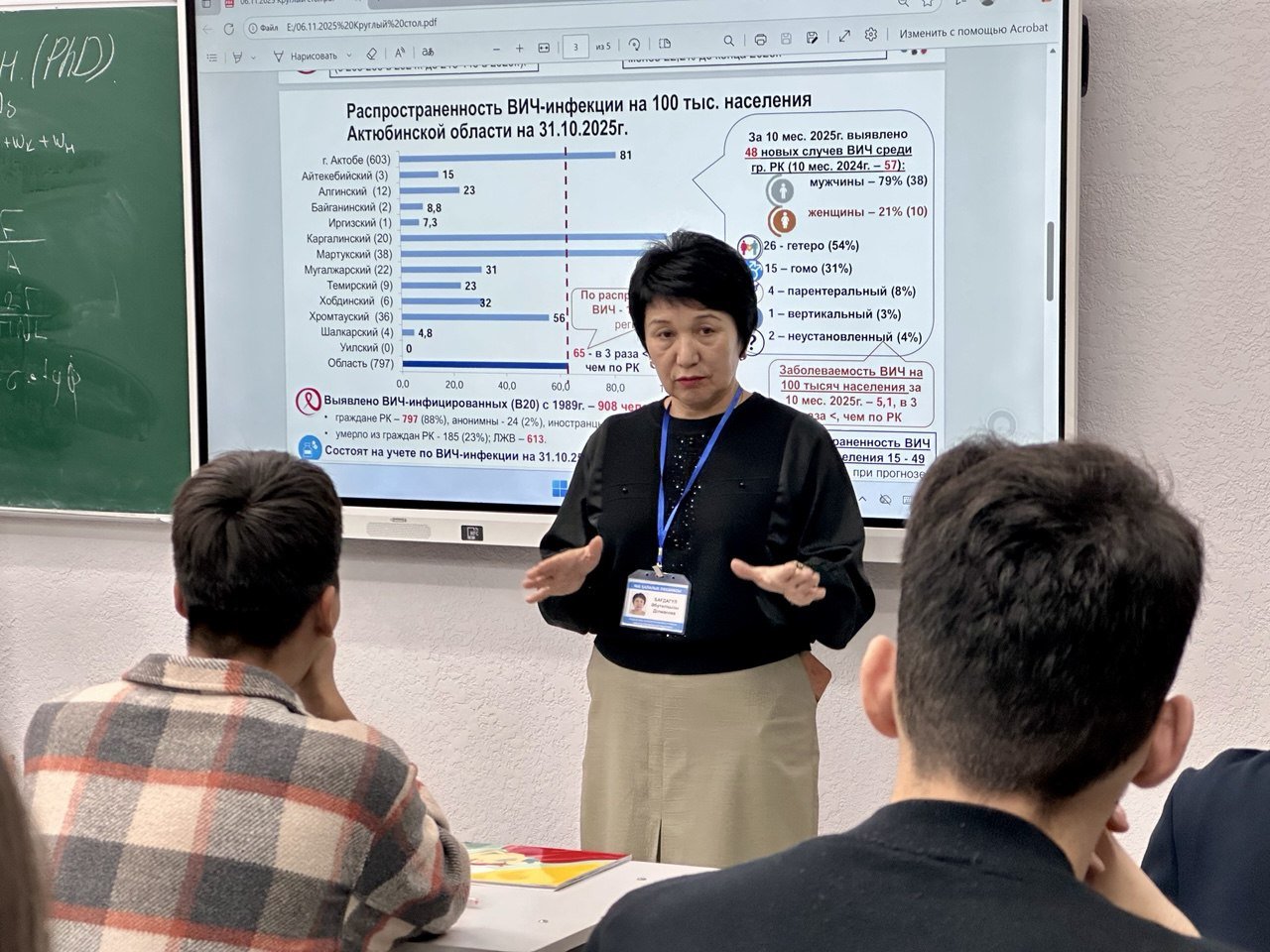 Сегодня специалисты Центра по профилактике с ВИЧ-инфекцией совместно с молодёжным центром здоровья «Жас дәурен» при поликлинике №6 провели встречу со студентами технического факультета Университета имени К. Жубанова.