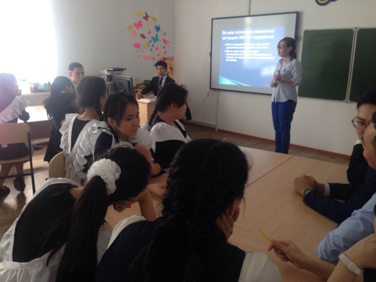 26 апреля врач-эпидемиолог Центра СПИД А.Артыкбаева провела семинар для учеников 9 и 11 классов средней школы №15. Тема семинара: «Профилактика ВИЧ-инфекция».