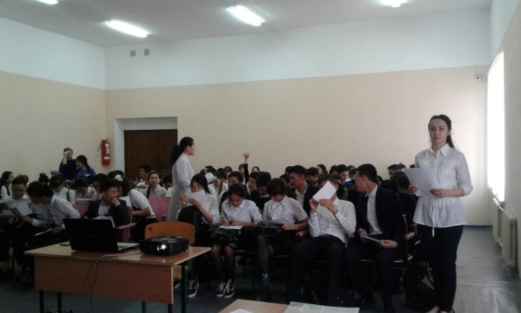 18 апреля в средней школе №14 для учеников 8-11 классов специалистом Центра СПИД Баимановой Л. совместно с врачом ЗОЖ, психологом, акушер-гинекологом городской поликлиники №5 была проведена лекция на темы: «Здоровый образ жизни и здоровое питание», «Профилактика ВИЧ-инфекции среди подростков», «Репродуктивное здоровье». Проведено анкетирование учащихся для определения уровня их знаний по ВИЧ-инфекции.
