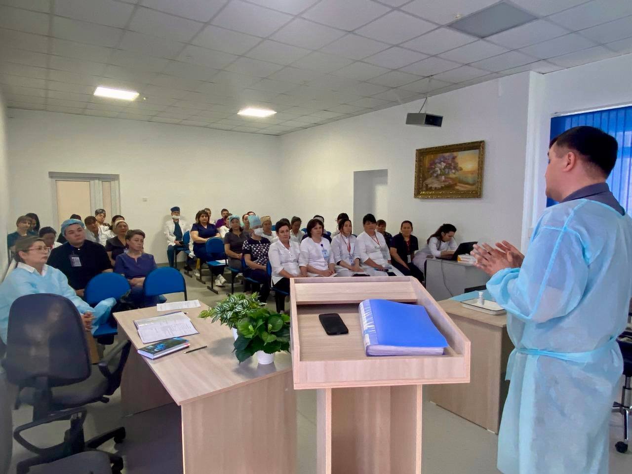 Іс-шара барысында эпидемиологиялық бөлімінің дәрігер эпидемиологы Садыков Талғат АИТВ/ЖИТС жөніндегі нормативтік құқықтық актілері, клиникалық көрсетілімдер бойынша балаларды тексеру, тиісті контингенттің, оның ішінде жүкті әйелдер мен олардың жыныстық серіктестерінің, реципиенттер мен фертильдік жастағы әйелдердің АИТВ-инфекциясына тексеру мәселелері бойынша медицина қызметкерлеріне семинар өткізді.