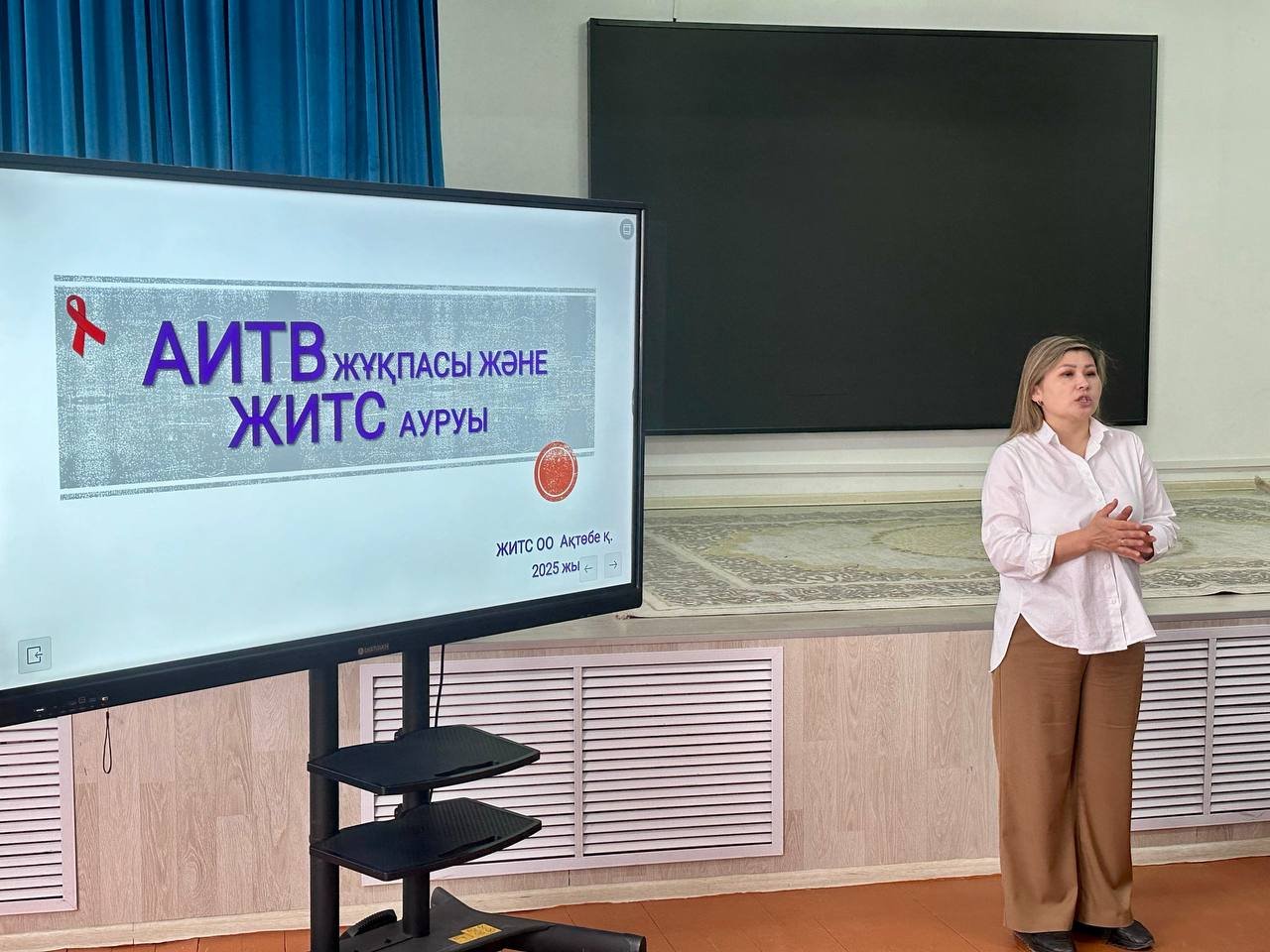 Сонымен қатар АИТВ-инфекциясының алдын алу мақсатында №1,4 Мәртөк жалпы білім беретін орта мектебінің оқушыларына дәрістер өткізді. Маман АИТВ-инфекциясынан қорғау шаралары мен берілу жолдары, стигма, АИТВ-позитивті адамдарға қатысты кемсітушілікке жол бермеу туралы ажәне Ақтөбе облысы бойынша АИТВ-жұқпасына байланысты эпидемиологиялық жағдаймен таныстырды.