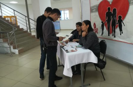 Корпустың холында студенттер АИТВ туралы өз сауалдарын қойып, кітапшалар ала алатын «АИТВ туралы білу» үгіт-насихат шатыры ұйымдастырылды.