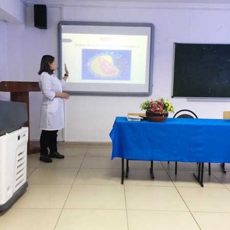 Дәріс барысында студенттер арасында АИТВ және ЖИТС мәселелері бойынша хабардар болу туралы сауалнама жүргізілді. Сонымен қатар ақпараттық-білім беру материалдары таратылды және бейнеролик көрсетілді.