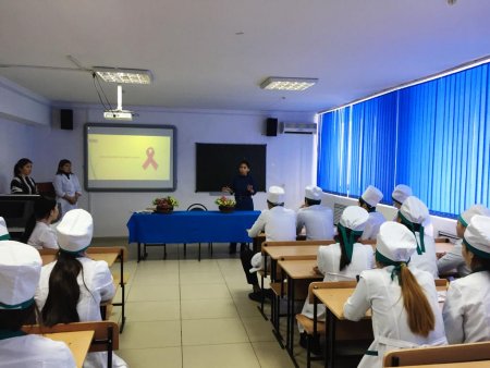 ЖИТС орталығының мамандары А.Жайлаубаева және Д.Уразалинова М.Маметова атындағы жоғары медициналық колледжінің студенттеріне «жастар арасында АИТВ-жұқпасының алдын алу» тақырыбында кездесу оқыды.